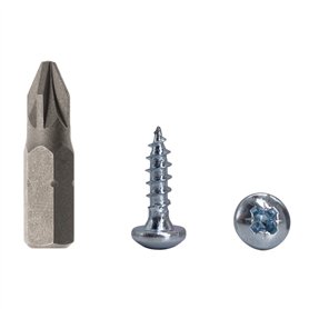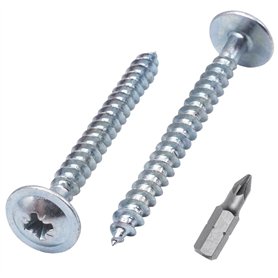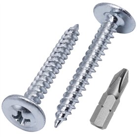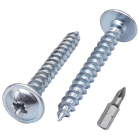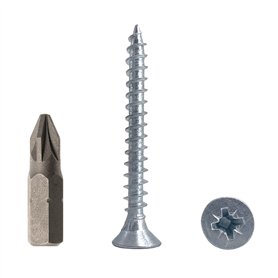 Lot de 400 vis à bois universelles en acier zingué 4 x 30 mm pour panneaux d'aggloméré Vis à tête fraisée PZ 400 4 x 30 mmEmballage : 400 pièces. Dimensions : 4,0 x 30 mm. 1 embout de tournevis adapté est inclus. Couleur : argenté.Type de disque : Pozidriv. Tête plate. Universelles pour bois, plastique, MDF, panneaux de particules, etc.Matériau : Acier au carbone plaqué zinc. Solides, durables, fiables. Filetage complet pour une connexion maximale.