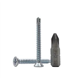 Lot de 200 vis en acier zingué DIN 7504 P 3,9 x 16 mm, vis à tôle auto-foreuse, tête fraisée cruciforme, autotaraudeuse (200)Emballage : 200 pièces. Taille: 3.9 * 16mm 1 embout de tournevis inclus. Couleur: Argent Entièrement fileté. Norme DIN 7504 PType de lecteur : Phillips. Tête plate. Adaptées pour fixation en tôle, gouttières, toiture en tôle, travail du bois, constructions métalliquesRésistance et facilité d'installation : Vis en acier zingué solides, durables, fiables. Point d'auto-perçage pour une installation rapide sans perçage préalable