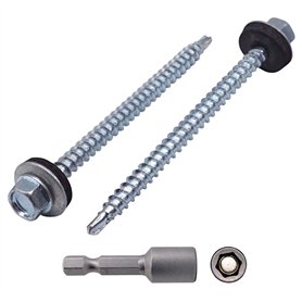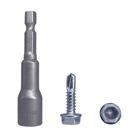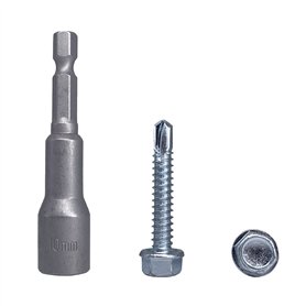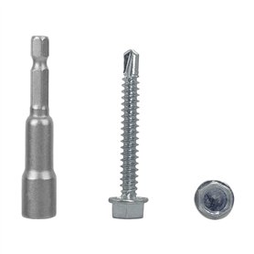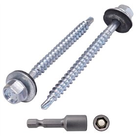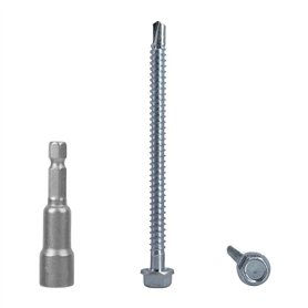 Lot de 40 vis auto-perceuses en acier zingué, tête hexagonale 5,5 x 220 mm avec rondelles EPDM pour fixer des panneaux sandwich de la marque Marcopol.Emballage: 40pcs Taille : 5,5 x 220 mm. 1 embout de tournevis à douille hexagonale magnétique inclus. Couleur: ArgentVis à tête hexagonale: Pointe auto-perceuse. Rondelles en acier avec EPDM. Diamètre de la rondelle : 19 mm. Capacité de perçage jusqu'à 12 mmMatériau de qualité: Vis en acier au carbone plaqué zinc, solides et durables. Embout de tournevis magnétique inclus pour une utilisation facile avec des perceuses sans fil