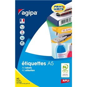 Boite étiquettes adhésives multi-usages Apli Agipa. La boite contient 2100 étiquettes blanches certifiées FSC, anti-bourrage, de dimensions 70 x 42 mm.INDISPENSABLES : Les étiquettes sont multi-usages pour classer, archiver ou adresser vos courriers.DE QUALITÉ : Réalisées en papier certifié FSC, conforme aux normes ISO9706 pour l’archivage.PRATIQUE : Adhésif résistant aux hautes températures pour un anti-bourrage efficace.