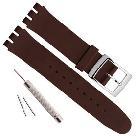 Bracelet de rechange en acier avec cuir de crocodile et vache (17 mm, White Stitch/Brown), blanc, marron, (White Stitch/Brown),Longueur: 115 mm + 75 mm Epaisseur: 34. 5 mm,Ajustement parfait pour 17mm montre Swatch.Imperméable à l'eau et léger: Idéal pour ceux qui ont un mode de vie actif, avec boucle en acier inoxydable plaqué argent hypoallergénique.Protection en cuir imperméable à l'eau: Absolvez de barres correspondant à ressort et un outil inclus.